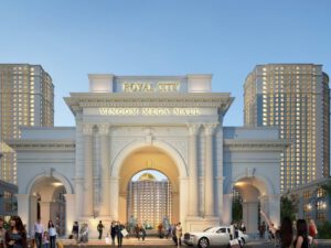 Trưa: Quý khách ăn trưa tại nhà hàng. Xe đưa đoàn đến Vincom Mega Mall Royal City, Quý khách tự do thư giãn tại khu giải trí trong nhà lớn nhất Việt Nam (chi phí tự túc): Công viên nước trong nhà, Sân trượt băng tự nhiện trong nhà rộng đến 3.000 m2, Thế giới games, trung tâm bowling, rạp chiếu phim,…Trung tâm mua sắm với gần 600 gian hàng,…Quý khách có thể tự túc khám phá phố ẩm thực với hơn 200 nhà hàng lớn nhỏ.