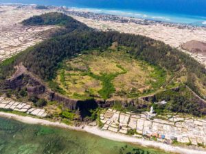 Núi Thới Lới là một trong năm ngọn núi lửa độc đáo trên đảo, nằm ở độ cao 170m so với mực nước biển. Mặc dù núi đã ngừng hoạt động cách đây hàng chục triệu năm, nhưng khi du khách đặt chân đến, vẫn mang một cảm giác lạ lẫm giữa đất trời.