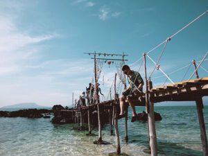 Một nơi tiếp theo không thể bỏ qua ở Đảo Bé đó là Cầu Tình Yêu. Cầu có view hướng ra biển cực kỳ đẹp, thêm vào đó còn được trang trí thêm tạo nên một địa điểm lý tưởng cho các cặp đôi. Đây cũng là cây cầu sống ảo duy nhất ở Đảo Bé, là nơi mà những du khách sống ảo không thể nào bỏ qua.