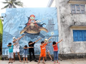 Làng Bích họa trên Đảo Bé cũng là địa điểm được nhiều người thích thú, bởi những bức tranh mang đậm cảnh sắc và con người Lý Sơn. Những bức tranh bích họa khiến khung cảnh Đảo Bé thêm sinh động, thu hút du khách.